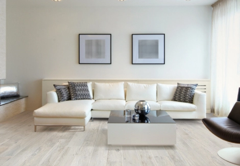 Практичный в плане влагостойкости, грязи и всего остального. И красиво. Незаметен переход от гостиной в сторону рабочей зоны, где кухня. Мне очень нравится, очень комфортно.
