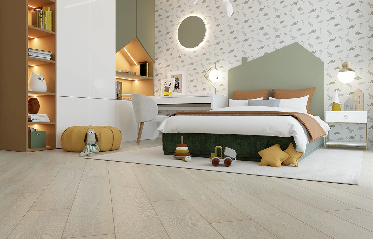 Адреса магазиновНатуральный ламинат MSPC Дуб Морская Гавань (арт. 91790-2 MP) на минерально-каменной основе - это полы очень красивого светло-бежевого цвета с выразительной текстурой и эффектом легкого браширования. Имеют широкий формат доски - почти 20 см в ширину и 122 см в длину с 4-сторонней фаской по периметру. Дизайн одинаково хорошо сочетается как с холодными, так и с теплыми оттенками. Часто используется для оформления детских комнат, спален и гостиных.